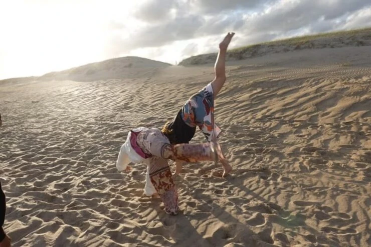 El mar fue protagonista de sus días de descanso. En una de las postales, levantó los brazos con el océano de fondo, luciendo una sudadera que decía “Siempre icónica”. En otra toma, hizo una pirueta sobre la arena al atardecer, mientras la luz dorada resaltaba sus movimientos.